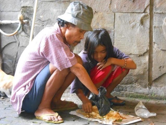 Saya pernah mengamati dan berbincang dengan sepasang suami istri berpenampilan lusuh. Mereka sedang duduk di bawah pohon rindang di suatu siang. Pasangan muda itu sedang berbagi nasi bungkus. Mereka tampak lahap menikmati santap siang.